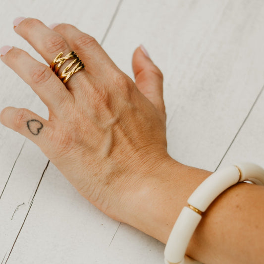EDEN - Bague création en acier Inoxydable doré et pendentif trèfle