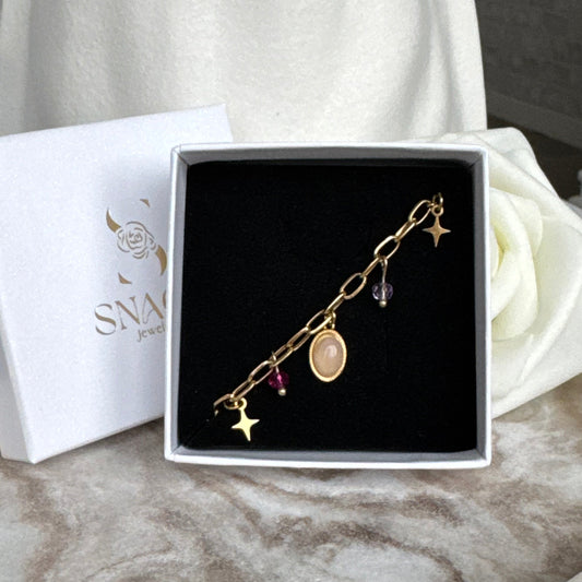 SONIA - Bracelet création en acier Inoxydable doré et breloques rose