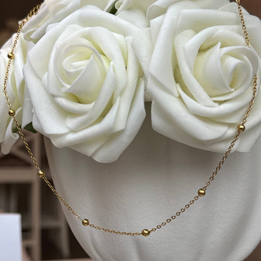 ENOLA - Collier en acier Inoxydable doré - Grosses perles beiges