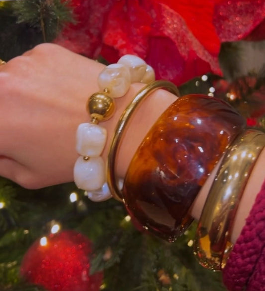 SISI - Jonc large en acrylique marron effet marbré