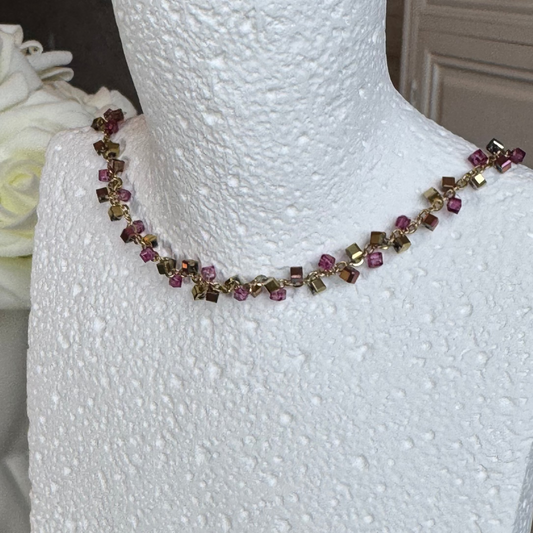 CLEMENTINE - Collier en acier Inoxydable doré et perles roses