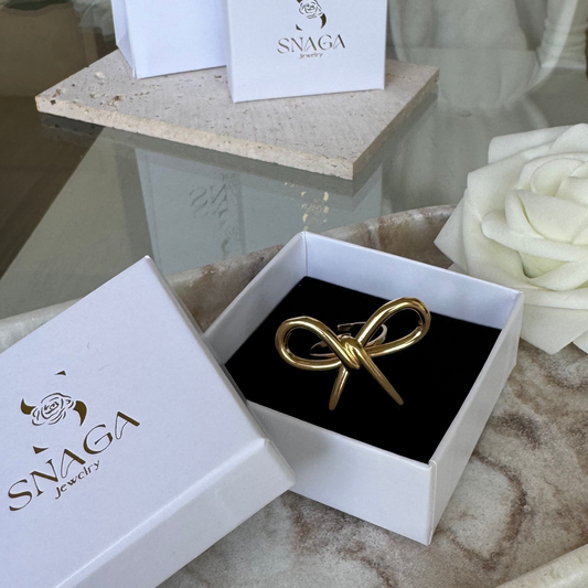 FAUSTINE - Bague en acier Inoxydable doré avec gros noeud