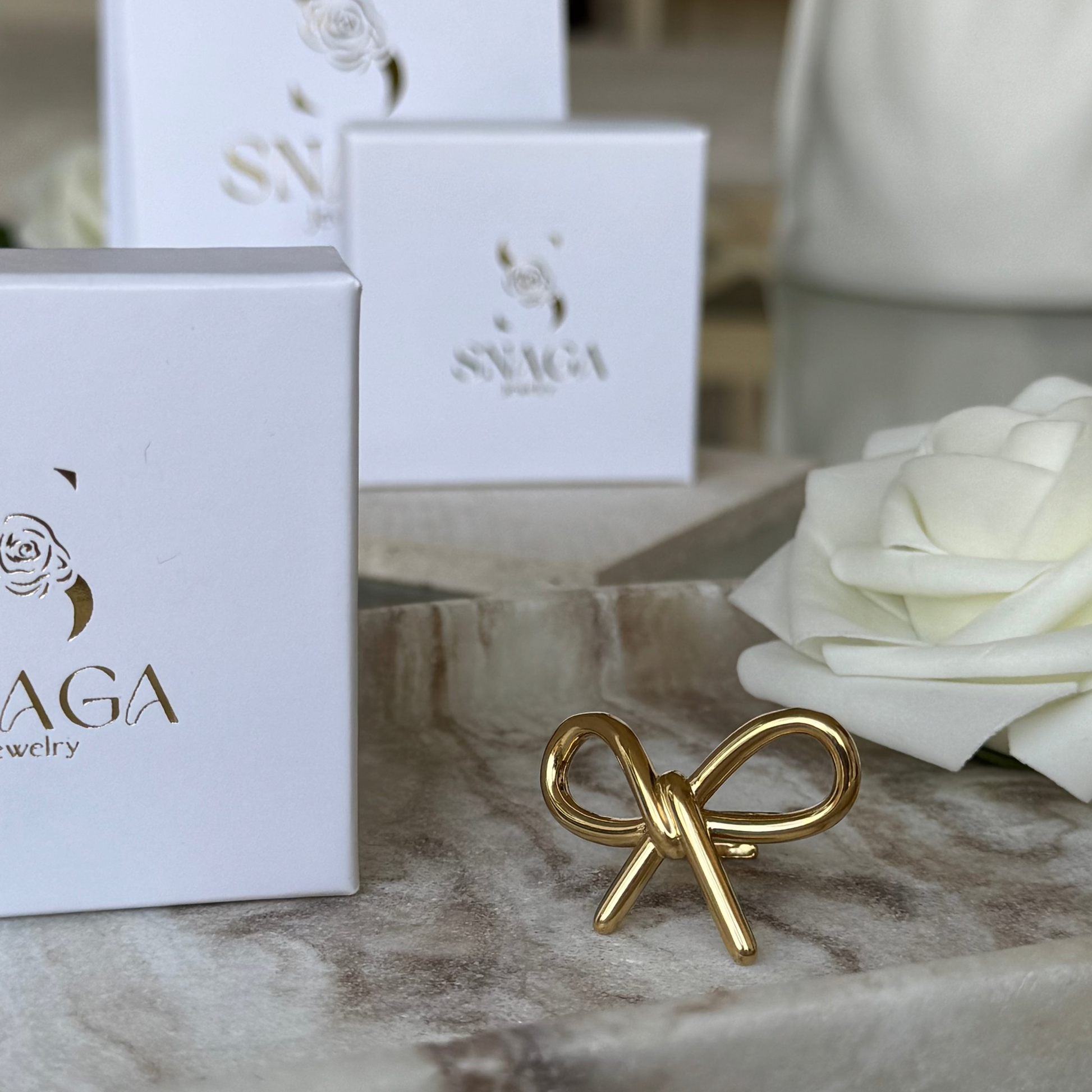 FAUSTINE - Bague en acier Inoxydable doré avec gros noeud
