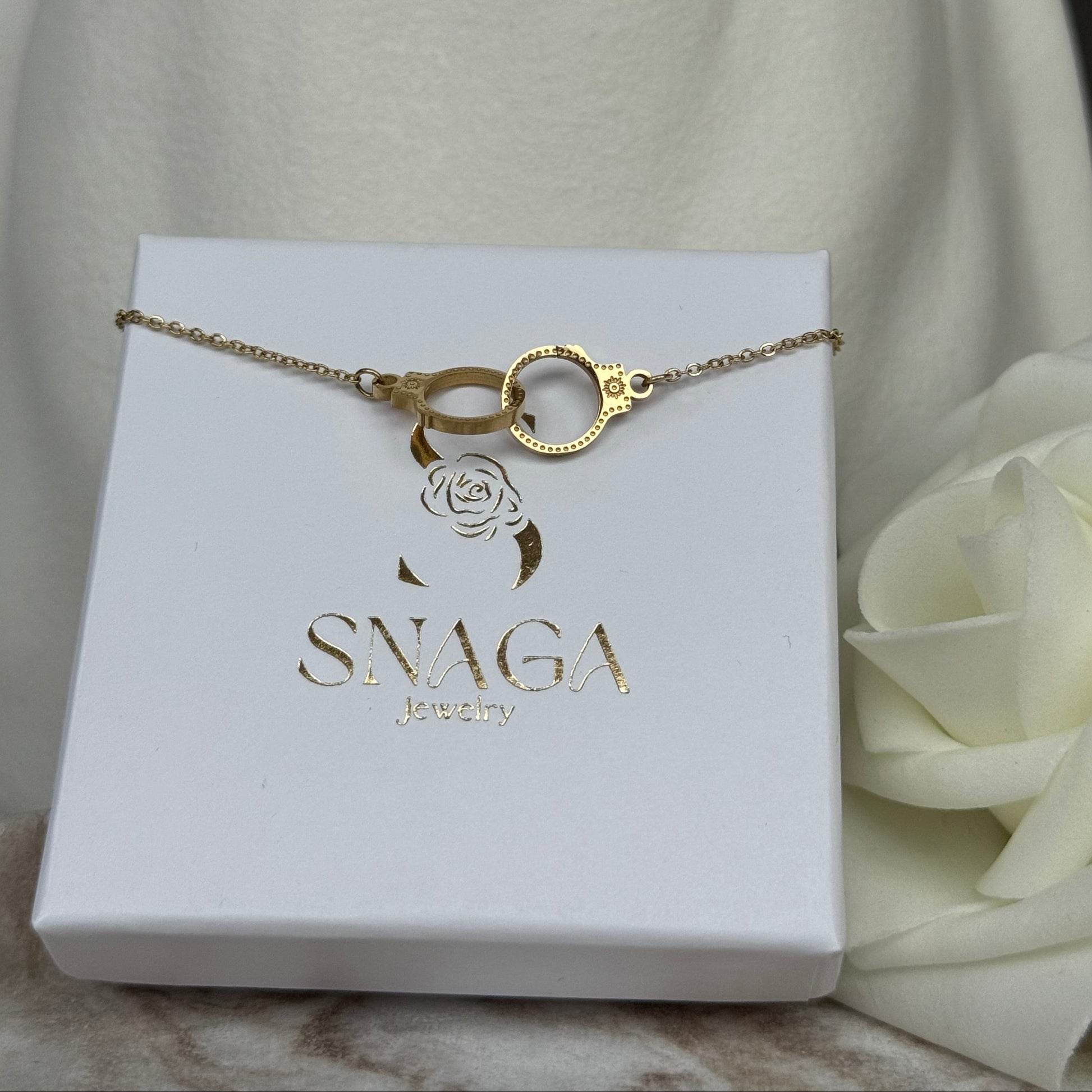 AURELIE - Bracelet en acier Inoxydable doré détails menottes