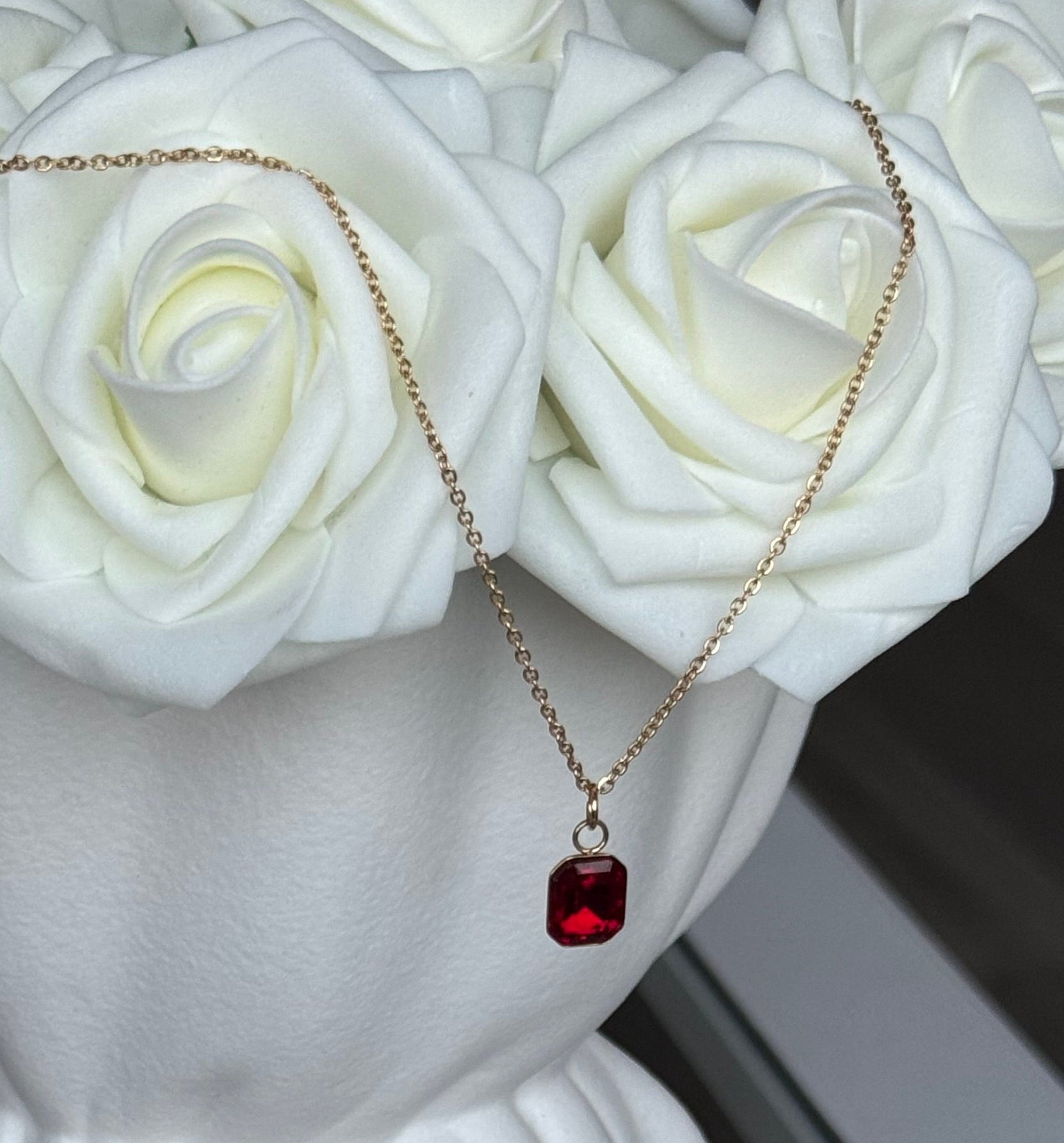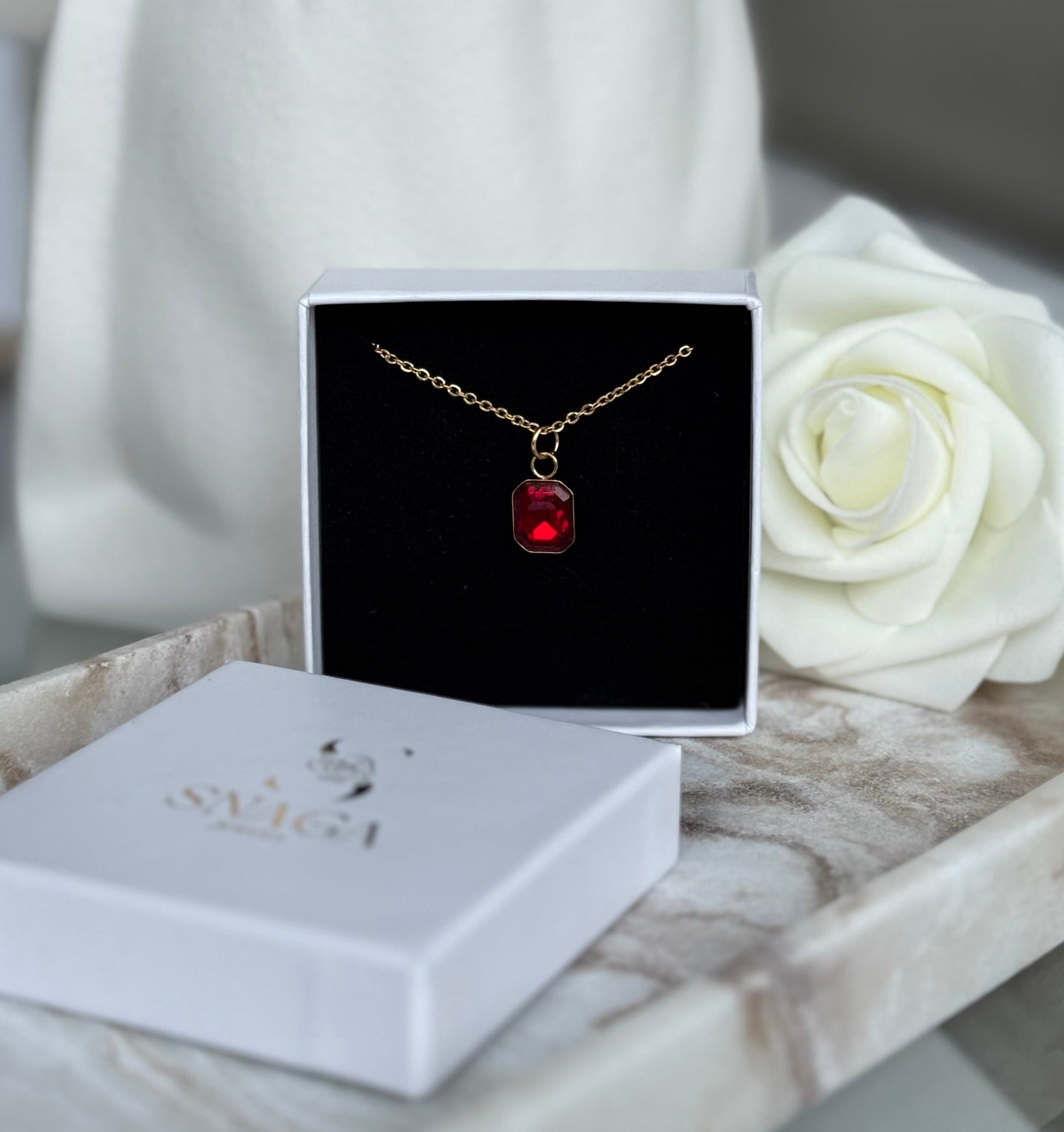 ZOÉ - Collier en acier Inoxydable doré et rouge