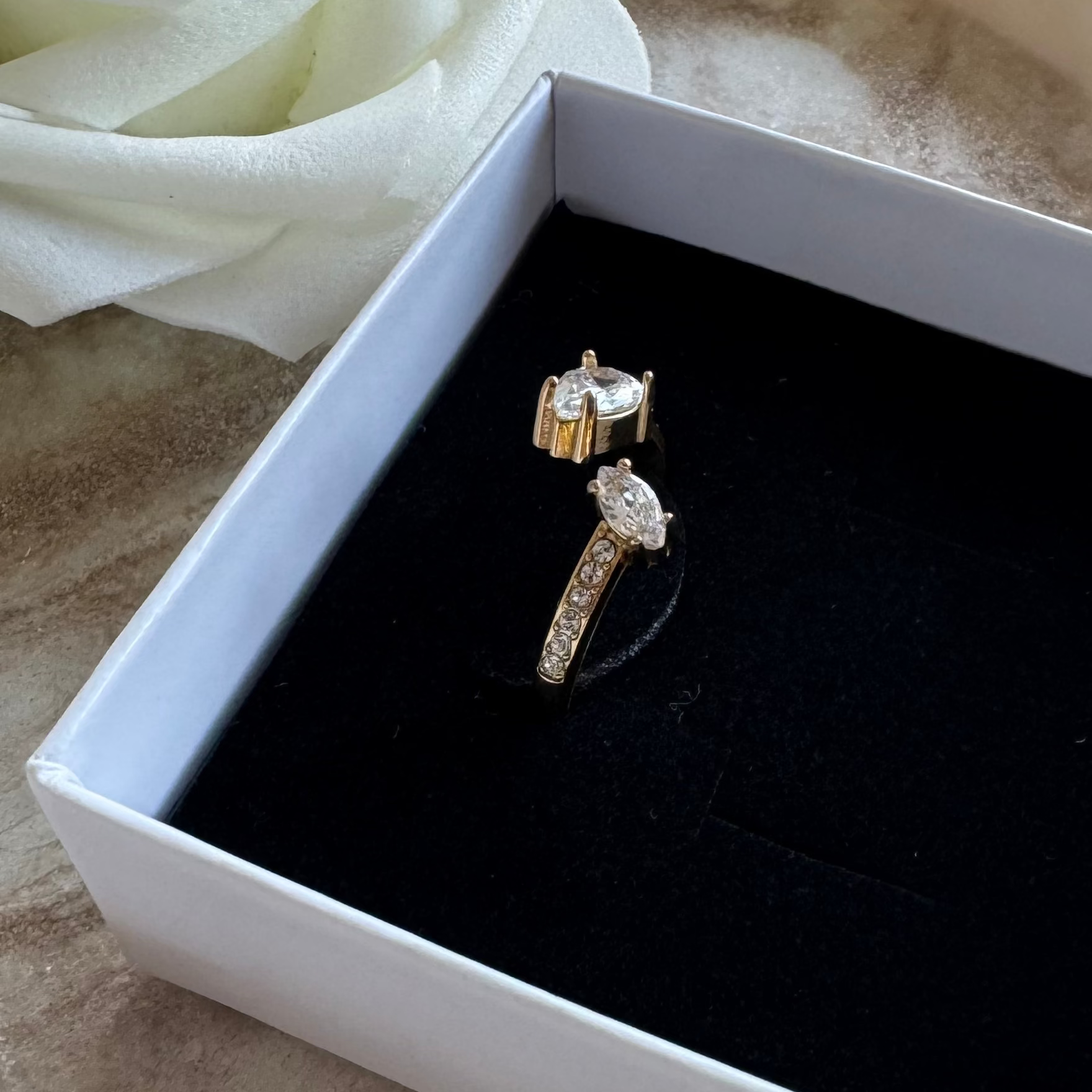 ISALYS - Bague asymétrique en acier Inoxydable doré et strass