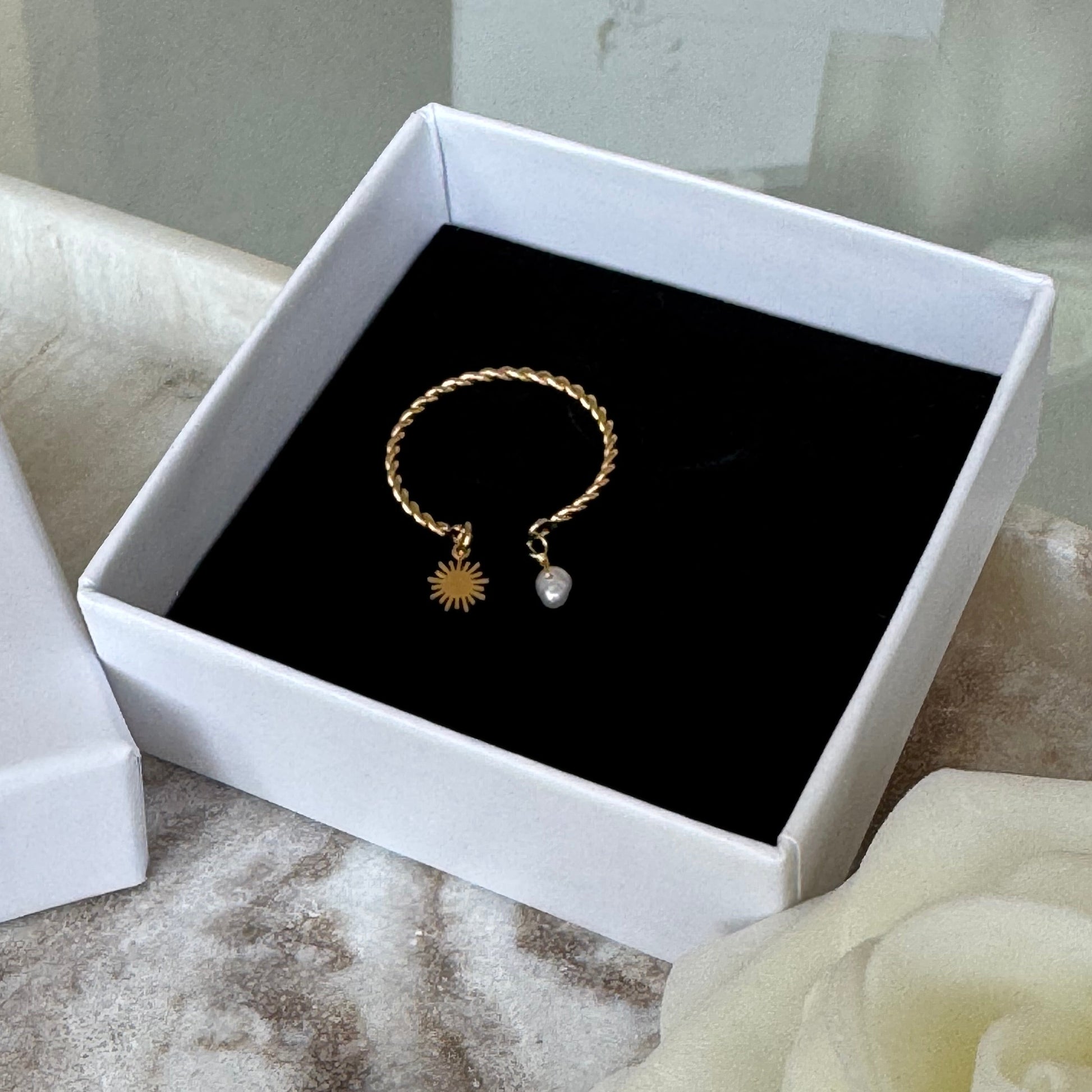 Matière : Bague en acier inoxydable et perle