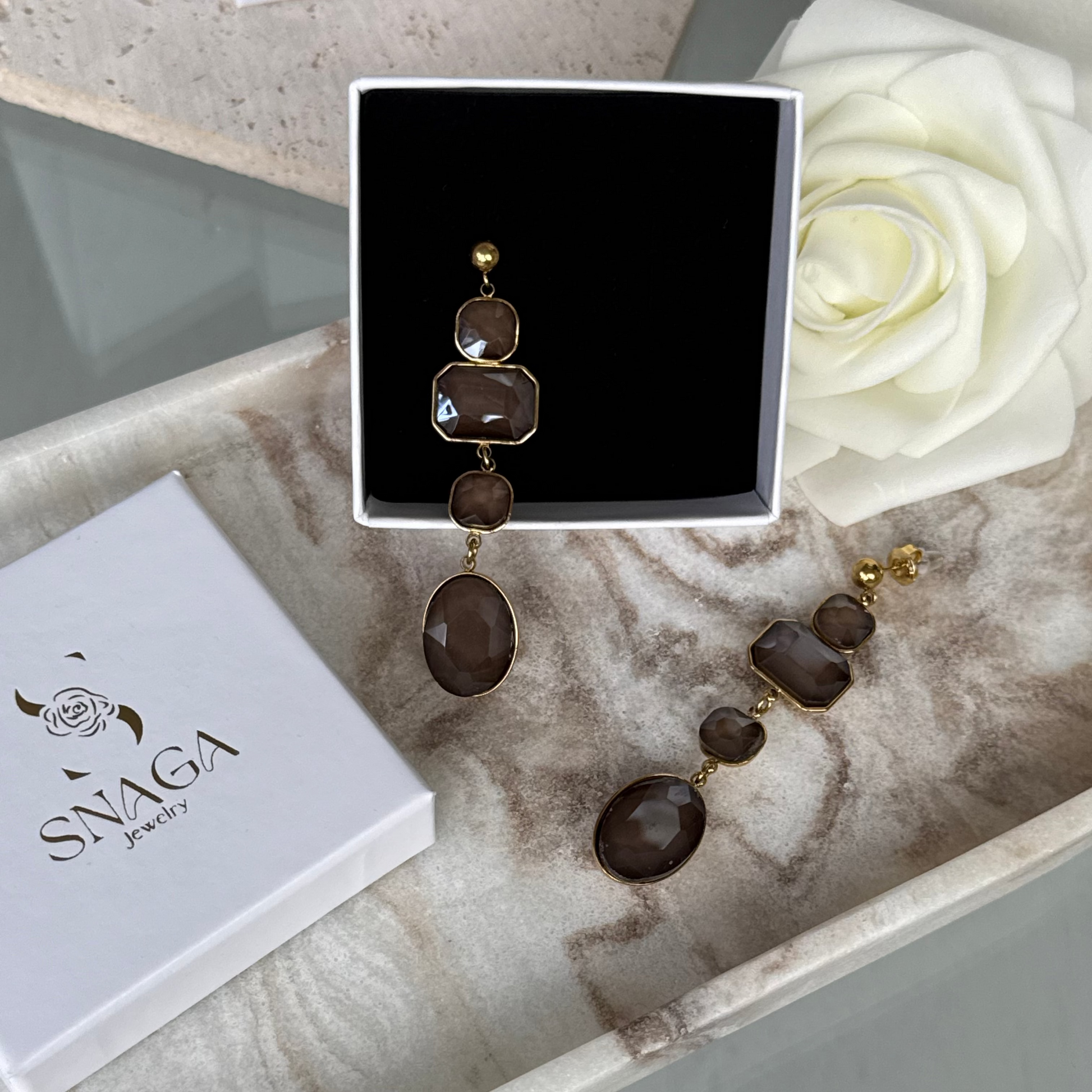 JASMINE - Boucles d'oreilles pendantes en acier Inoxydable doré - taupe