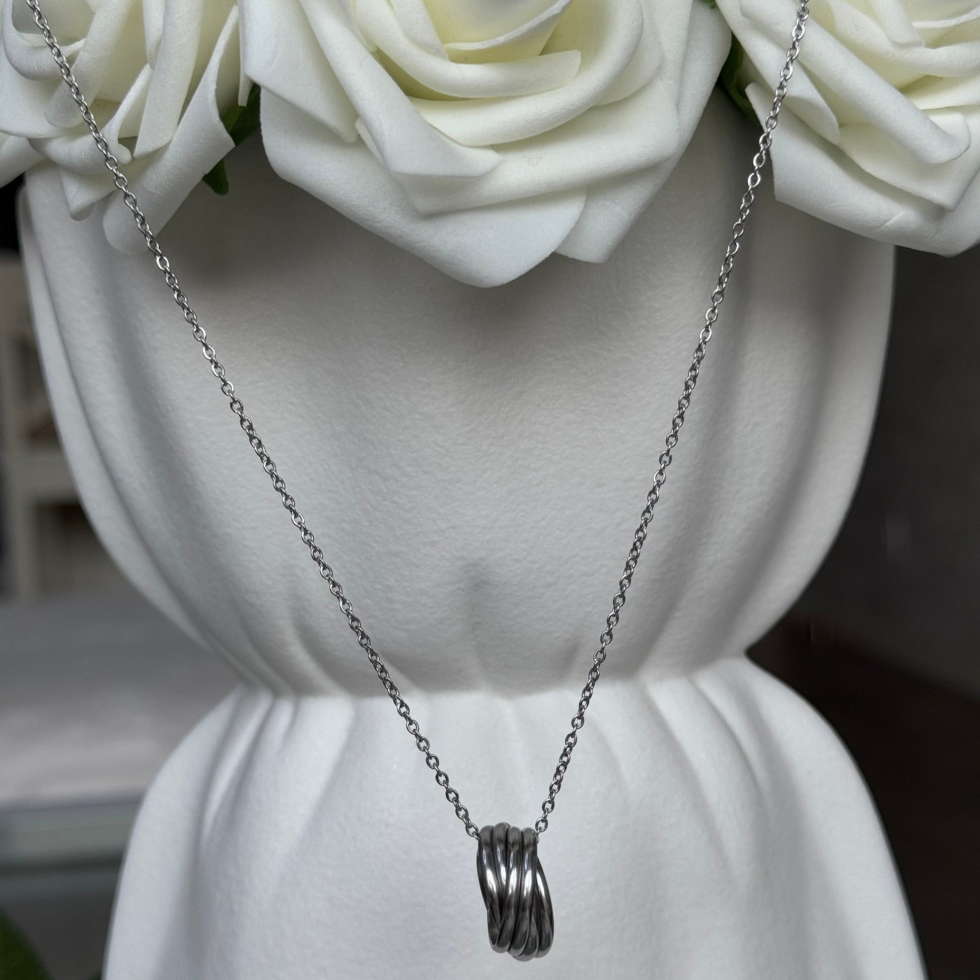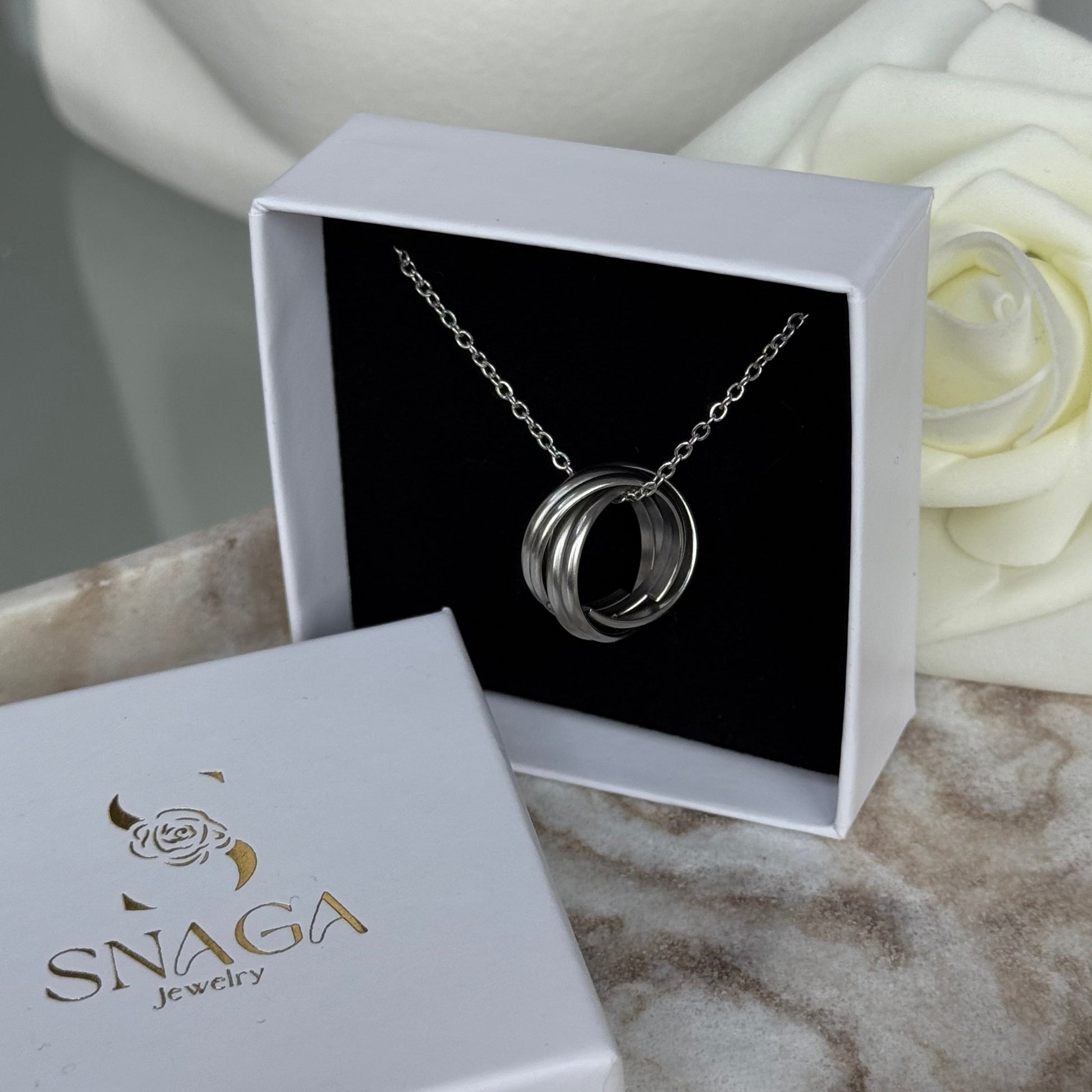MELINA - Collier en acier Inoxydable argenté et pendentif anneaux