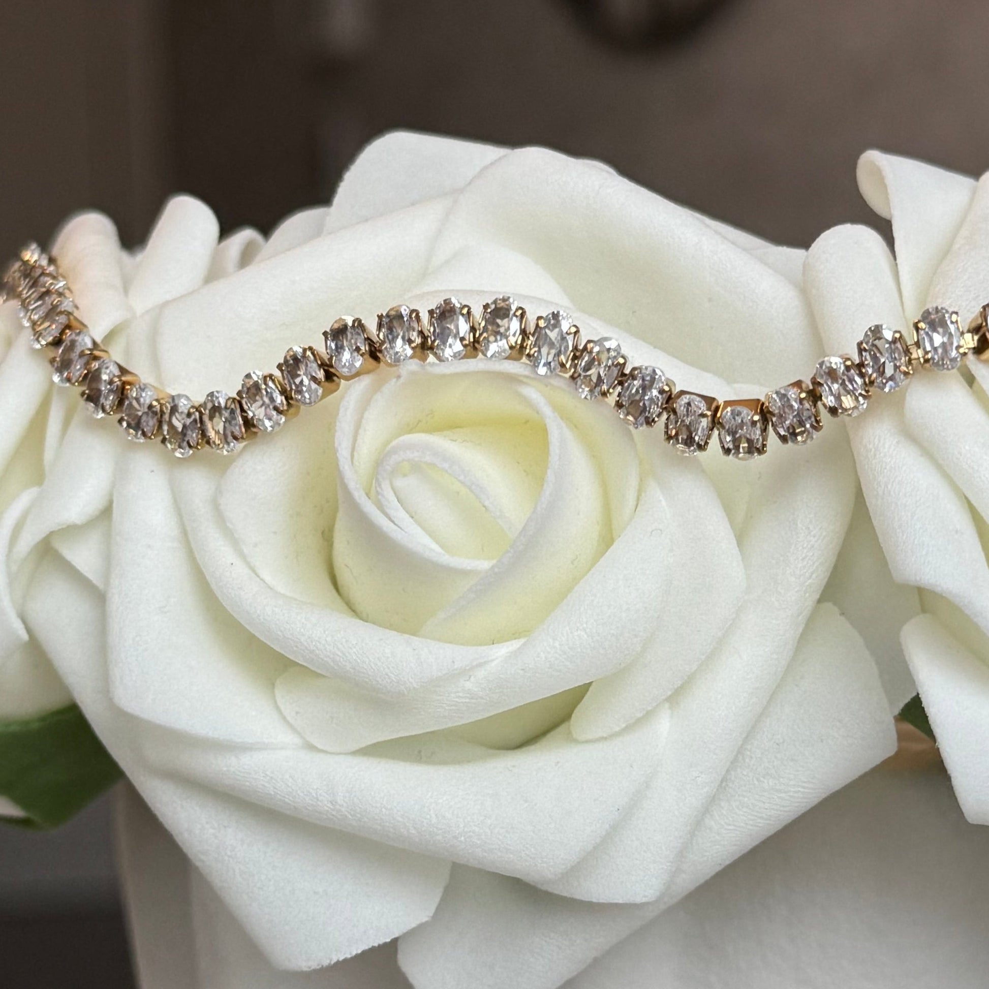 CHARLIZE - Collier ras de coup en acier Inoxydable Doré – Strass transparent
