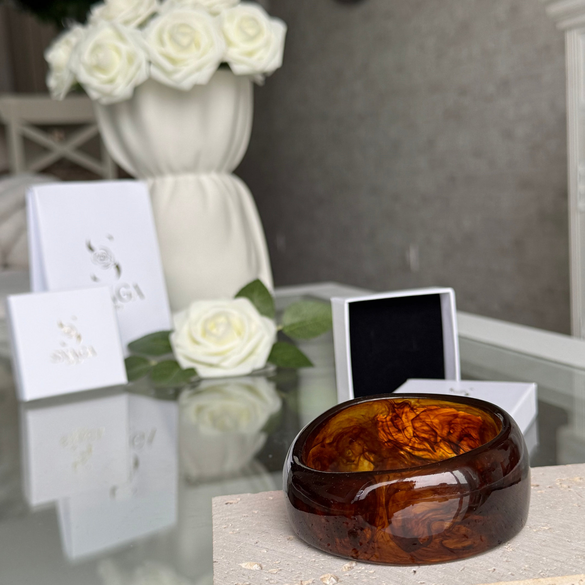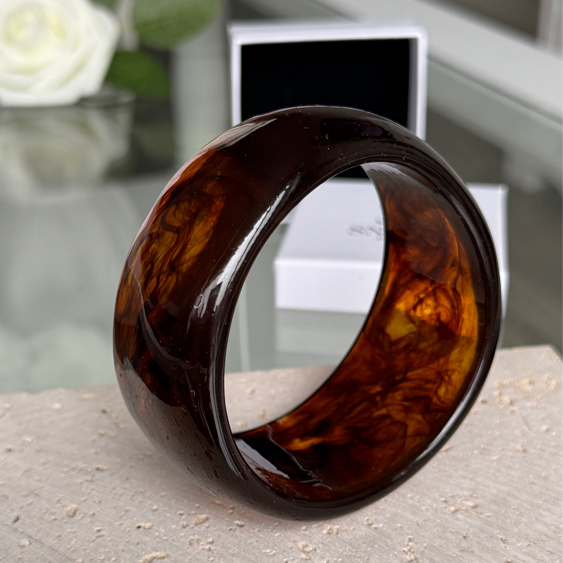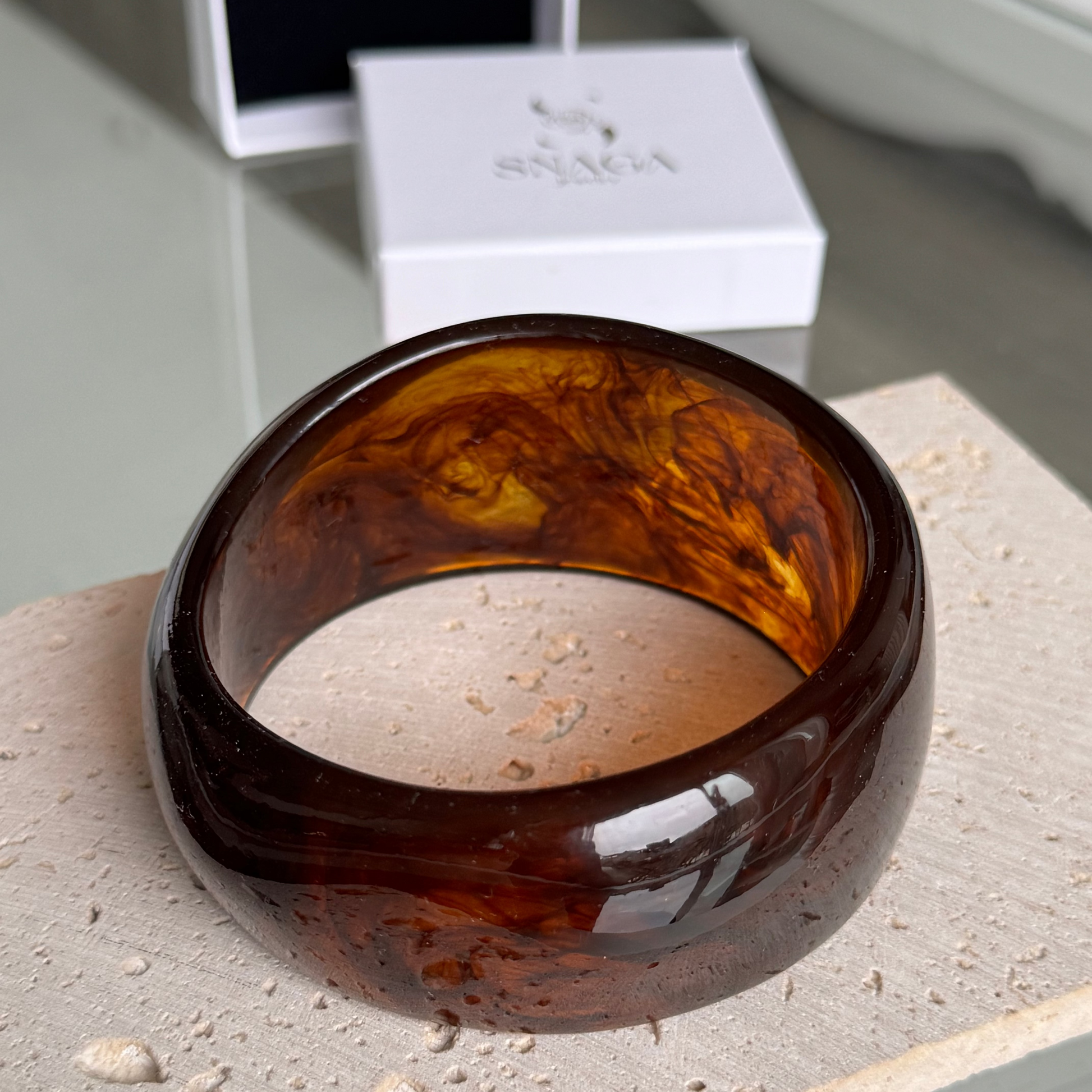 SISI - Jonc large en acrylique marron effet marbré